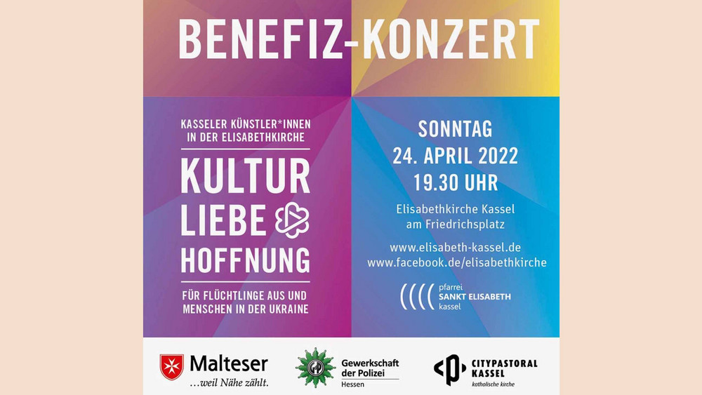 Die Elisabethkirche in Kassel lädt am Sonntag, 24. April um 19.30 Uhr zu einem Benefizkonzert für Menschen in und aus der Ukraine ein. Kasseler Kulturschaffende wollen so gemeinsam mit Künstlerinnen aus der Ukraine einen solidarischen Beitrag leisten.