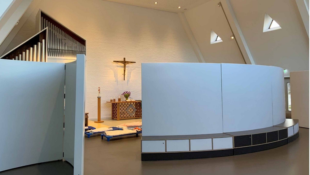 In Bad Wildungen turnen nun Kinder in der Kirche. Denn die Friedenskirche ist nun auch ein Familienzentrum mit Kita, Kletterwand und viel Platz. Dafür wurde eine weiße Trennwand eingezogen und unter der Woche wird der Altarraum sogar zum Schlafplatz für die Kita-Kinder. Für die Integration des Familienzentrums in die Kirche hat die Bad Wildunger Kirchengemeinde einen Preis bekommen, von der Stiftung zur Bewahrung kirchlicher Baudenkmäler.