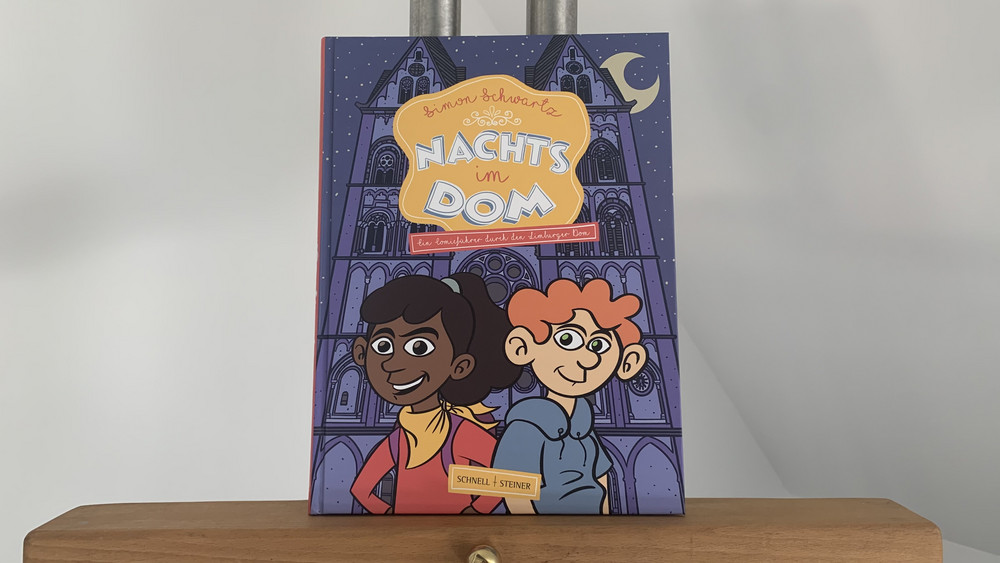 Der Geist von Graf Konrad Kurzbold, ein Drache und ein orgelverliebter Küster: Nico und Georgia erleben die Geheimnisse des Limburger Doms bei ihrer abenteuerlichen Nachtwanderung. Der Comicführer „Nachts im Dom“ vom mehrfach prämierten Zeichner Simon Schwartz ist jetzt vom Bistum Limburg herausgegeben und am Sonntag, 18. September, im Rahmen des Kreuzfestes auf dem Domplatz vorgestellt worden. Humorvoll und informativ tauchen nicht nur junge Leserinnen und Leser in die Geschichte des Limburger Doms ein.