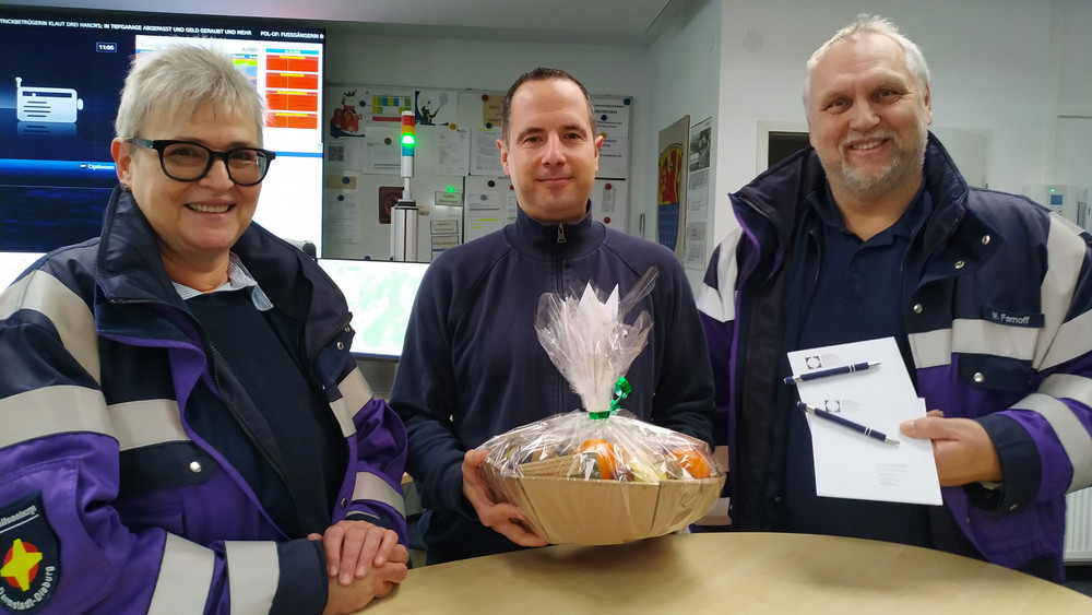 Für das Team der ökumenischen Notfallseelsorge Darmstadt-Dieburg gehört dieser Termin fest in den Weihnachtsterminkalender. Jedes Jahr packen Gemeindereferentin Susanne Fitz und ihr Kollege Pfarrer Michael Fornoff Geschenkkörbe. Diese sind prallgefüllt mit Obst, Saft, Plätzchen und reichlich Schokolade. Die Seelsorger verteilen die Päckchen an alle umliegenden Notfallhelfer im Kreis Darmstadt-Dieburg. Sie wollen damit ihre Dankbarkeit zeigen für den Einsatz den die Helfenden in der Not bringen, und zeitgleich daran erinnern, wie wichtig die Notfallseelsorge am Einsatzort ist. Bei der Geschenkeübergabe freuen sich beide Seiten. Heiko Widemann von der Rettungsleitstelle Dieburg sagt: „Gerade bei den Kollegen die an Weihnachten im Schichtdienst arbeiten, ist so ein Schokoriegel oder ein bisschen Obst der richtige Energieschub – eine tolle Aktion.“