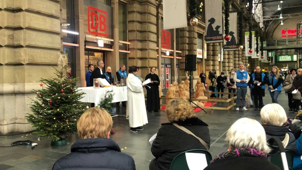 Heute, Heiligabend, um 12:30 Uhr, feiert die Bahnhofsmission mitten in der Bahnhofshalle ihren Weihnachtsgottesdienst, direkt im Reisetrubel. Aus vielen Ecken von weiter her kommen Menschen extra für den Gottesdienst nach Frankfurt. Was das besondere an Heiligabend am Hauptbahnhof ist, hat uns Leif Murawski erzählt. Er arbeitet seit 32 Jahren bei der Bahnhofsmission. Im Artikel lest ihr, warum er gerade an Weihnachten gerne hier arbeitet.