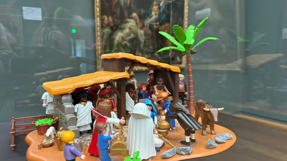 Im Kasseler Schloss läuft im Moment die Ausstellung „Playmobil trifft Gemäldegalerie. Alte Meister neu erzählt“ (https://www.heritage-kassel.de/besuch/ausstellungen/playmobil-trifft-gemaeldegalerie) Hier werden berühmte Bilder mit Playmobil Figuren in 3D kopiert und vor dem Gemälde in einem Glaskasten ausgestellt. Die Ausstellung läuft täglich von 10 bis 17 Uhr, am 1. und 3. Freitag im Monat auch bis 19 Uhr. In der Umfrage hört ihr, was die Besucher zu der Idee sagen.