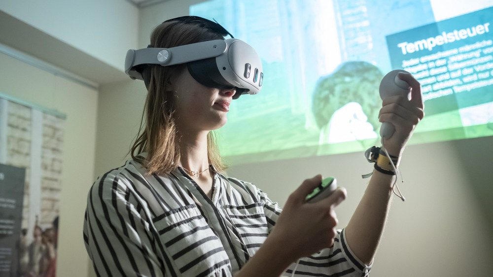 Seit Dienstag könnt ihr im Bibelhaus Erlebnismuseum in Frankfurt den Münzhandel im Jerusalemer Tempel zur Zeit Jesu kennenlernen. "Virtual Jerusalem - Münzen im Jerusalemer Tempel vor 2000 Jahren in virtual reality" heißt die Ausstellung. Ihr bekommt eine Virtual-Reality-Brille (VR) auf den Kopf und Joysticks in die Hände und dann bewegt ihr auch im Jerusalemer Tempel des Herodes. Hier kommt ihr zur Homepage vom Bibelmuseum.