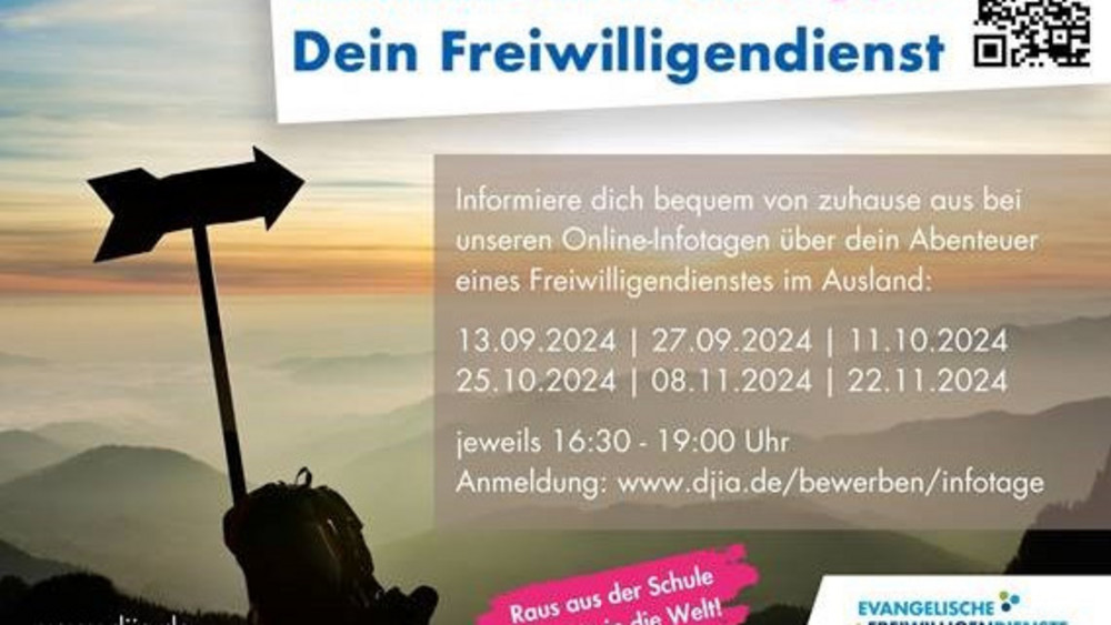 Was machen nach dem Abi? Vielleicht ein Jahr ins Ausland? Das geht zum Beispiel mit evangelischen Freiwilligendiensten. Da läuft gerade die Bewerbungsfrist für den Sommer 2025. Am Freitag ist wieder ein Online-Infotag, der geht von 16:30 Uhr bis 19 Uhr.