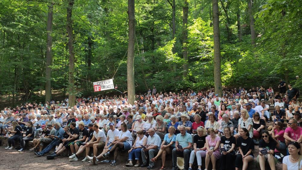 Der Gottesdienst findet am Sonntag, den 10.08., auf der Waldbühne in Eschwege statt. Los geht’s um 14 Uhr. Ein Shuttleservice fährt um 13:00 Uhr und 13:30 Uhr Besucher:innen ab der Tränenbrücke zur Waldbühne. Der Besuch ist kostenlos, ein Festivalticket wird dafür nicht benötigt.