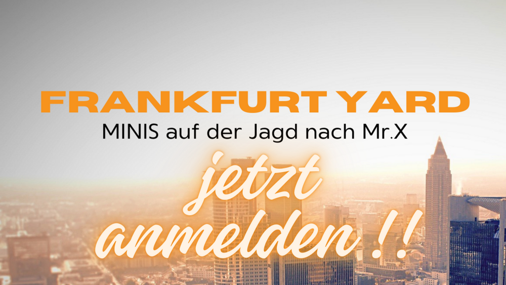 Mit den und gegen die Minis aus dem Bistum Mainz machen sich Ministranten-Gruppen aus dem Bistum Limburg in Frankfurt auf die Jagd nach Mr. X. Mit Bus, Straßen-, U- und S- Bahn geht es kreuz und quer durch die Mainmetropole - immer den Tipps aus der Agentenzentrale hinterher. Am 27. September steigt ab 10 Uhr das coole Event der Minireferate aus den Bistümern Mainz und Limburg. Ihr könnt euch mit eurer Ministrantengruppe anmelden. Jeweils um die 15 Gruppen dürfen auf die Jagd gehen. Ein Tag Action und Nervenkitzel in Frankfurt mit anschließendem Gottesdienst in der Jugendkirche JONA. WICHTIG!: Die Mainzer Minis melden sich bitte über diese Seite an. Die Limburger Minis melden sich bitte über diese Seite an.