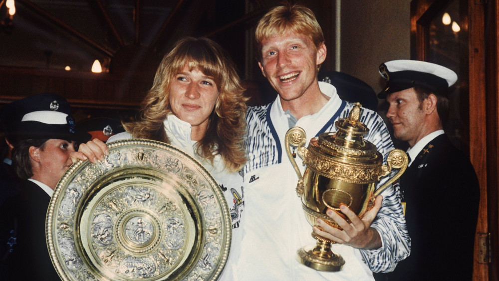 Und giibts auch noch Steffi Graf: 1989 gewinnen sie und Boris am gleichen Tag Wimbledon. Das ist ungewöhnlich, weil das Finale der Damen sonst immer samtags stattfindet. Das Wetter in London ist aber so mies, dass beide Finalspiele am Sonntag ausgetragen werden. Am 9. Juli heißt es dann zweimal Spiel, Satz und Sieg für Deutschland!